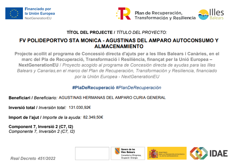 Esta actuación se enmarca dentro del Plan de Recuperación, Transformación y Resiliencia, financiado por la Unión Europea – NextGenerationEU, contribuyendo activamente a la transición hacia un modelo energético más sostenible